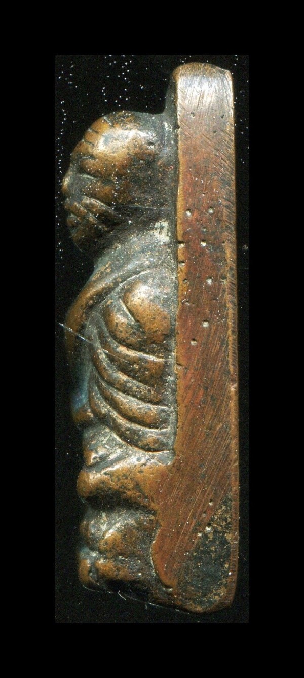 หลวงปู่ทวด วัดช้างให้ พระรูปเหมือนหลังเตารีด พิมพ์เล็ก หน้าอาปาเช่ แข้งขีด (นิยมสุด) เนื้อโลหะผสม ปี ๒๕๐๕ |